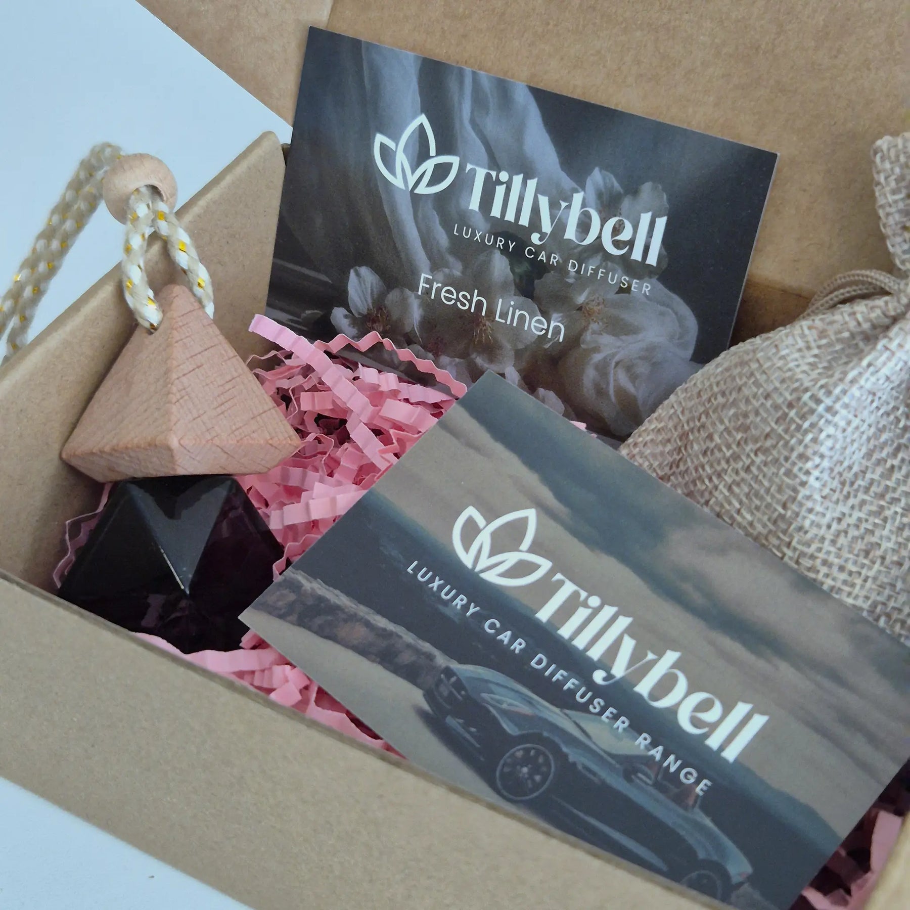 Each Tillybell Car Diffuser is hand-filled in the UK using premium fragrance oils for a refined, consistent scent that lasts for weeks. The sleek refillable design diffuses naturally through the wooden lid, delivering everyday luxury with every mile.