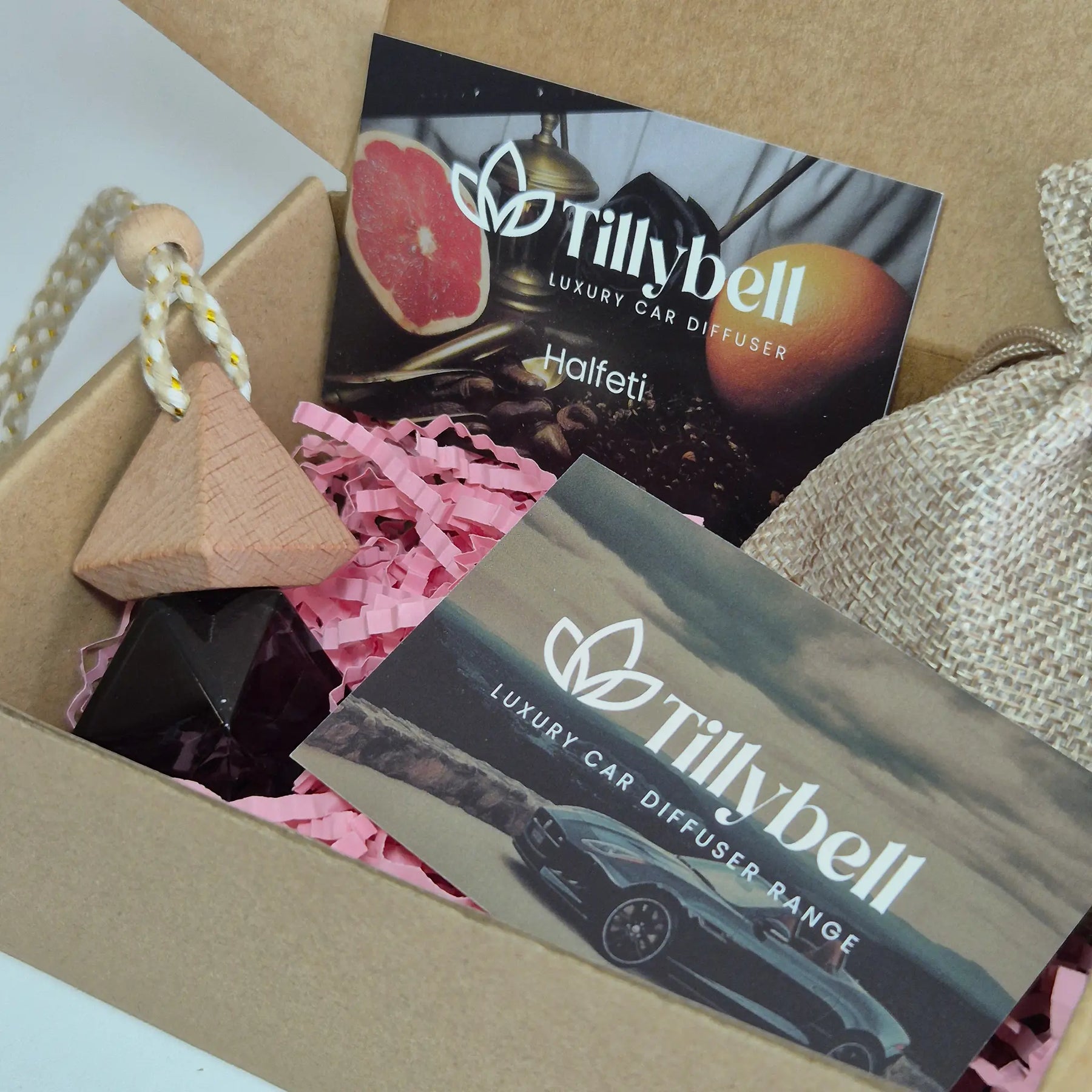 Our Halfeti Car Diffusers are inspired by the fragrance of Penhaligon's Halfeti - created independently by Tillybell and similar only in style and identity.