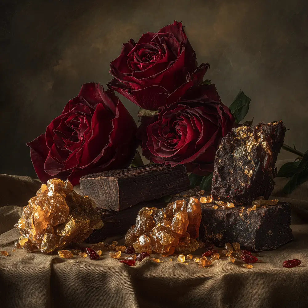An oriental floral accord combining rich rose and geranium with smooth oud wood and hints of praline. The scent deepens into dark cedarwood, sandalwood, vetiver and amber, creating a distinctive, powerful, and refined fragrance.