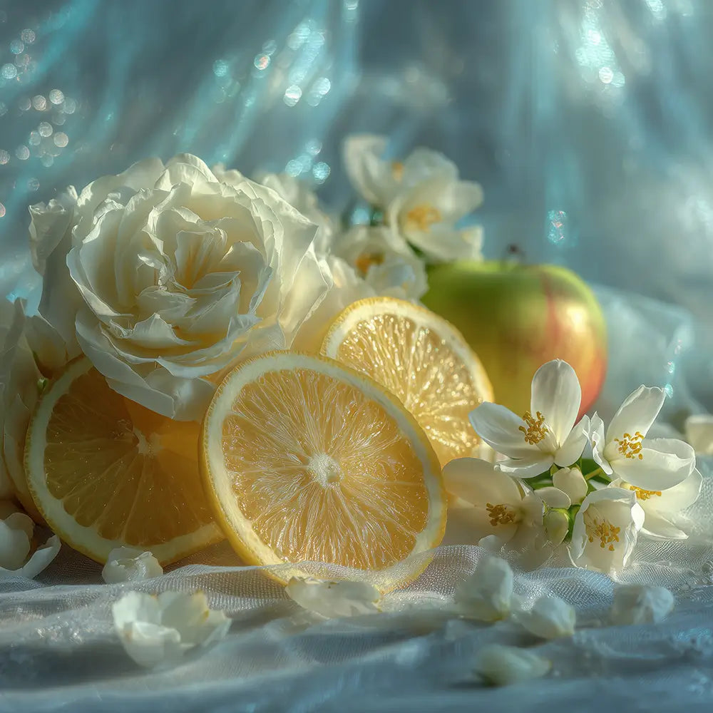 A fruity floral accord opening with clean ozonic notes and bright citrus orange, peach and green apple. The heart reveals translucent jasmine, rose and neroli, lifted by fresh eucalyptus and aromatic green notes. The fragrance finishes with soft vanilla and patchouli for a smooth, comforting base. It's a beautifully balanced, clean scent that feels fresh, bright and endlessly inviting.